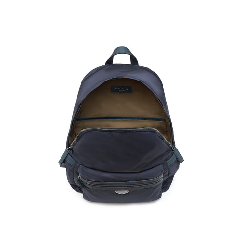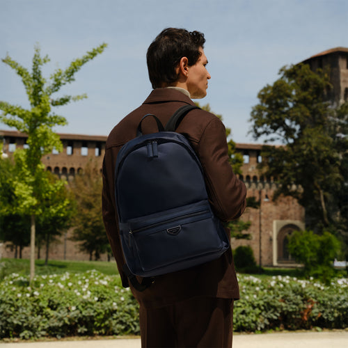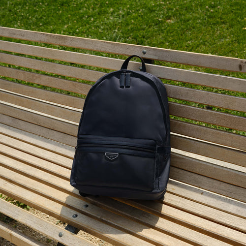 - イタリア製の高密度軽量ナイロンを使用し、しなやかで上品な光沢と高級感を演出するジップ開閉式のバックパック。