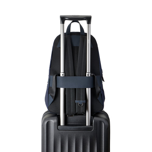 - 開口部が大きく開くため、荷物の出し入れがしやすいバックパック。背面にはスーツケースのハンドルに通せるバンドを備え、トラベルにも最適。