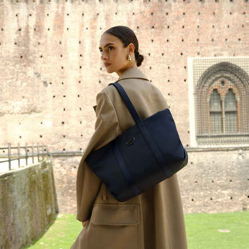 - イタリア製の高密度軽量ナイロンを使用し、しなやかで上品な光沢と高級感を演出するトートバッグ。