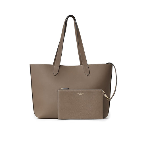 - 軽量で心地よいシュリンクレザーの風合いと、トレンドに左右されないシンプルなフォルムが特徴的なトートバッグ。