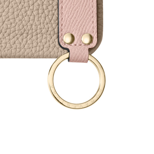 - ハンドルのリングは、別売りのショルダーストラップで斜め掛けができるほか、鍵やストラップ、キーチャームなどを取り付け、マルチに使用可能。